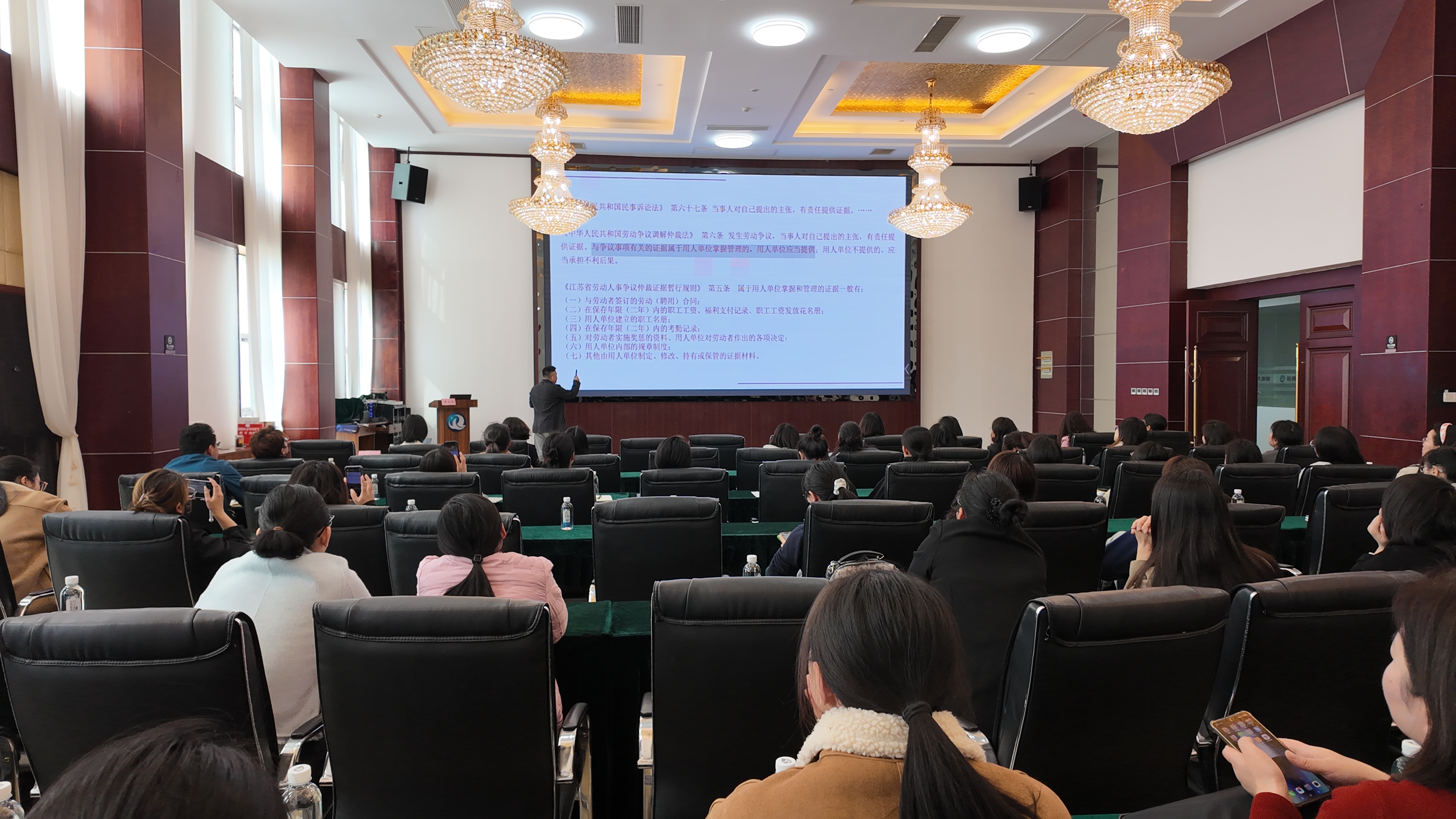 为进一步提升企业劳动关系管理水平,适应新经济形态下的用工环境变化,增强企业合规用工、风险防范能力和维护职工合法权益,近日,由江苏高淳经济开发区总工会主办、南京医疗器械产业园工会联合会协办的职工大讲堂—“新经济背景下,劳动关系管理重点”专题法律培训成功举办。本次培训特邀江苏法德东恒律师事务所高级合伙人李成龙律师担任主讲嘉宾,南京医疗器械产业园管理办公室副主任孙惠玲,区内企业工会负责人、人力资源管理人员等70余人参加活动。
