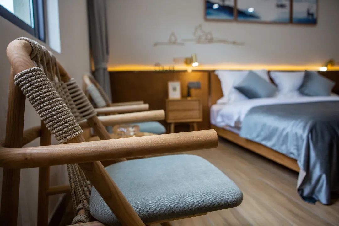 小茅山脚下的宝藏民宿——渔隐朴宿,头顶是蓝天白云,背靠龙墩湖水库,枕湖而居,风景宜人,是体会“渔歌文化”的绝佳去处。
