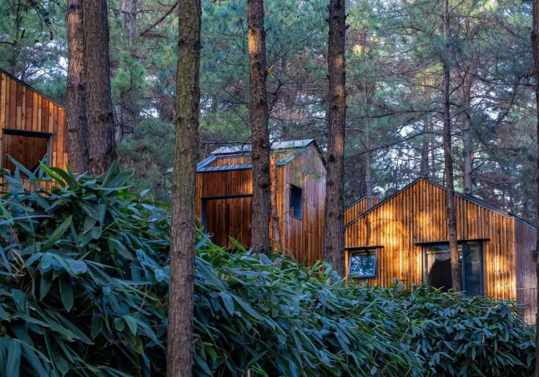 酒店坐落在山上幽静的松树林中,那些散落在原生马尾松林中的小木屋,仿佛是童话里的场景。可枕松而眠,亦可俯瞰月光湖景,完全满足了都市人对山居生活的一切想象。