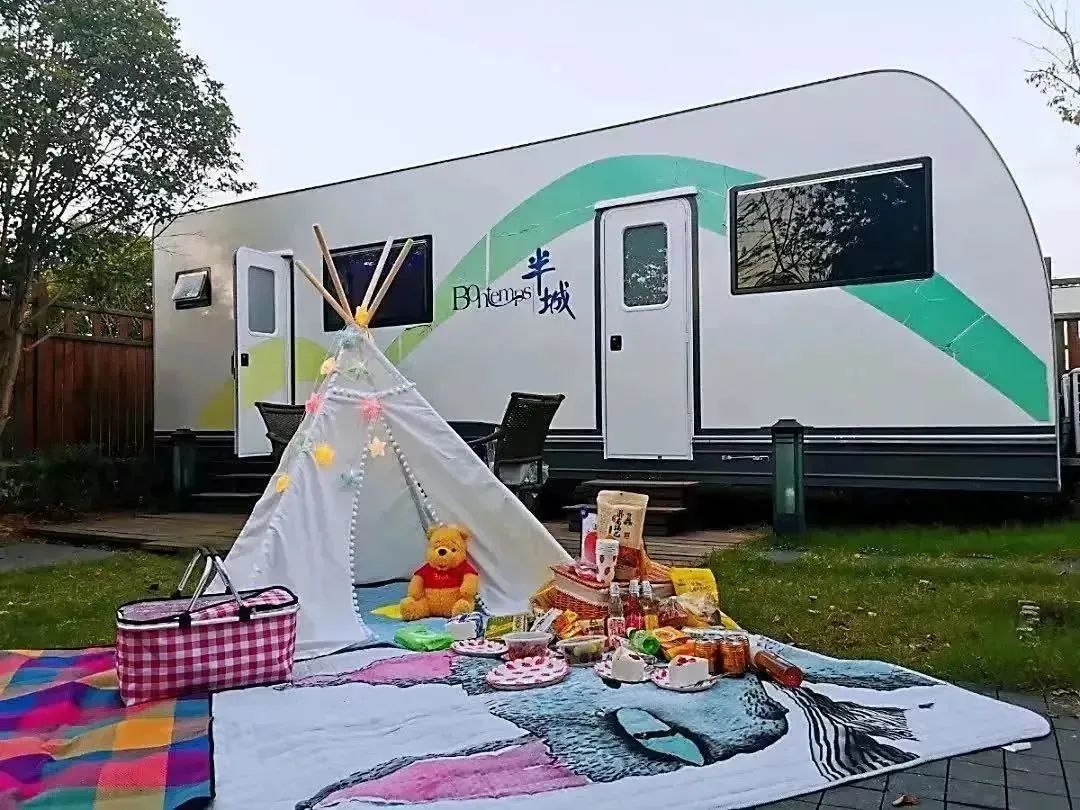 半城·大山房车度假酒店紧邻桠溪慢城大山慢客中心,远眺即可望见文峰塔,独占青山碧水,像一颗镶嵌于山水之间的宝石。