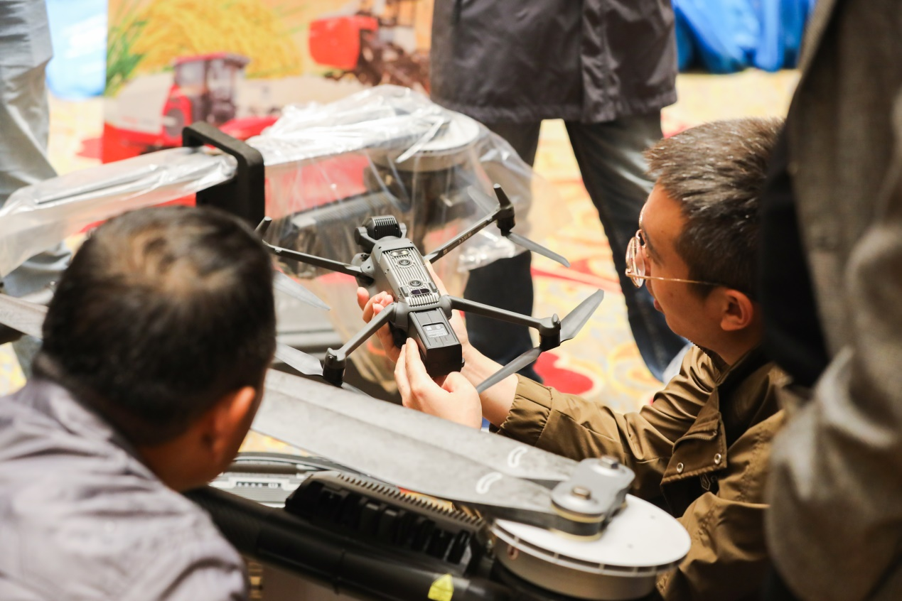 “藏粮于地、藏粮于技”,大赛启动现场设置了智能化农机设备展台,吸引众多种植户围观。活动结束时,虞国华的手机里又增加了好几个智能农机推广人员的微信,他盘算着,今年是不是要考虑再买一台植保无人机……
